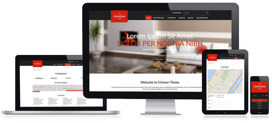 Crimson is a minimalistic theme, ideal for corporate sites and business that require a sleek and clean site. The theme is capable of multiple layouts, with various pagetypes, elements, and typography to choose from. The Crimson Theme also renders beautifully through different platforms through its mobile-responsive feature, made possible by Bootstrap.